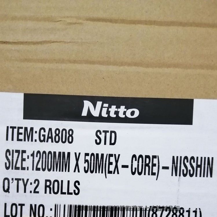 应用特点:日东GA808双面胶是由白色无纺布双面涂布丙希酸胶制成,颜色为白色半透明,规格为:1200MM*50M,厚度0.14mm。具有良好尺寸稳