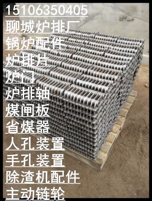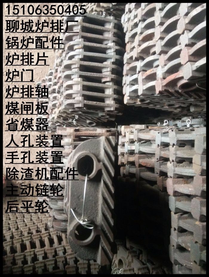 启东玛钢18单面炉排 灰铁24单双面从动片生产厂家链带式炉排属于轻型炉排,适用于蒸发量10t/h以下的锅炉.炉排片分为主动炉排片和从动炉排片两种,用圆钢拉杆串联在一起,形成一条宽幅的链带,围绕在前链轮和后滚筒上.主动炉排片担负传递整个炉排运动的拉力,因此其厚度比从动炉排片厚,由可锻 铸铁制成.一台蒸发量4t/h的锅炉,由主动炉排片组成的主动链条共有三条(两侧和中间)直接与前轴(主动轴)上的三个链轮相啃合.从动炉排片,由于不承受拉力,可由强度低的普通灰口铸铁制成.