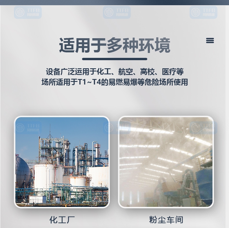 5、广泛用于石油开采、炼油、化工、制药、军工等危险环境及海洋石油平台、油轮等场所。