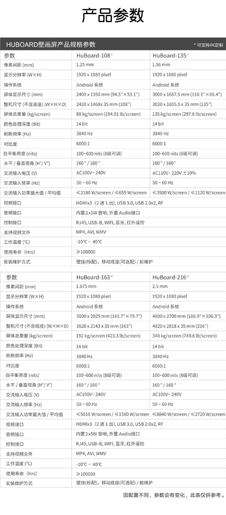 | 产品参数 | |||