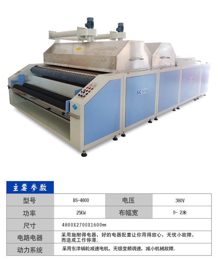 用途:适用于开加工缩水厂,制衣厂,服装厂布料缩水定型。