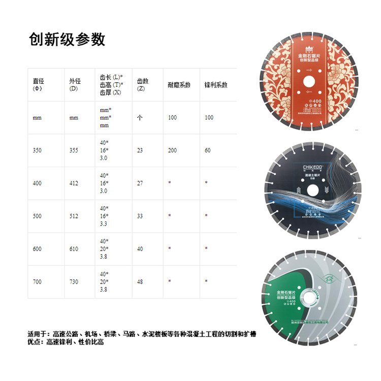 | 创新级优点 | 高速锋利 性价比高 | ||