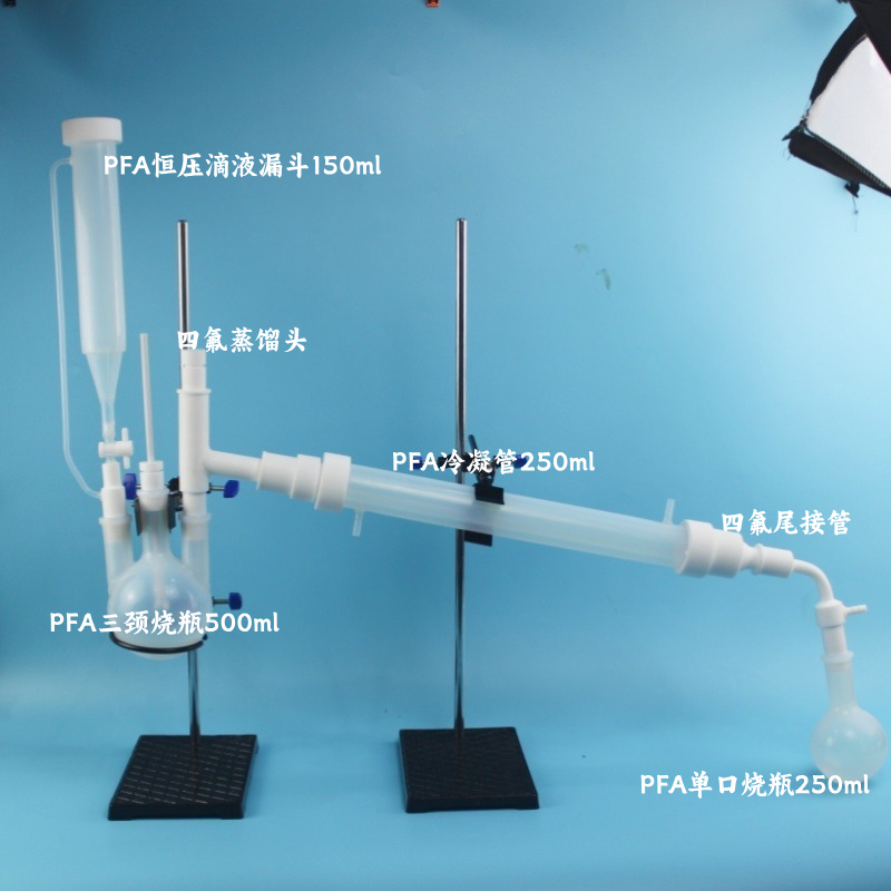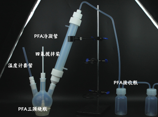 ?接收装置?:PFA接收瓶(100mL-3L)或FEP试剂瓶,带放液阀,透明材质便于观察。