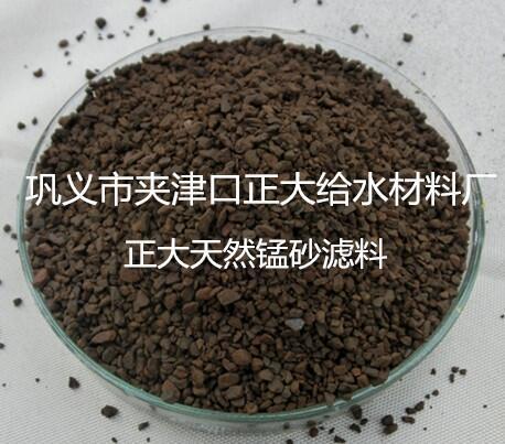 锰砂滤料是采用国内质量优良、晶粒致密、机械强度大、化学活性强、不易破碎、不溶于水的天然锰矿砂。经水洗打磨除杂、干燥、磁选、筛分、除尘等工艺成砂。再把加工好的锰砂按一定的级配调合而成。它具有水处理滤料最理想的级配比例,使它在单位体积内有最大的比表面积、最强的截污能力、最大的氧化催化作用和最小的反冲洗流失率。锰砂滤料外观粗糙呈褐色或淡灰色,常用于生活饮用水的除铁、除锰过滤装置,滤水效果非常良好。(注:MnO2≥35%既可除铁,又能除锰,MnO2≤30%)只能用于地下水除铁)锰砂滤料主要用于降低水中的铁锰铁和锰总含量,根据我国生活饮用水卫生标准规其铁含量≤0.3㎎/L,锰含量≤0.1㎎/L,长时间饮用含铁含锰量过高的水会严重影响身体健康.