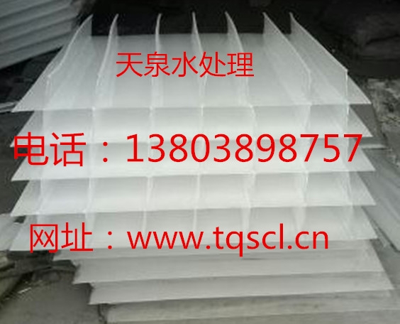 斜板沉淀池填料多功能高效组合斜板填料內部水流流道通畅,不易积泥夫泥,上向流沉淀池和侧向流沉淀池均可应用,因此适用于各种水处理工艺,其强度高、耐腐蚀、可拆解的特性使其与传统斜板相比使用寿命大大延长。天泉小间距斜板材质为聚丙烯,它由斜板和肋条两部分组成,外观为平行六面体,侧面为倾角60°的平行四边形,斜板间距为50mm,板材与工字条间采用热合焊接固定。在沉淀池中采用小间距斜板,完全消除了传统沉淀设备、抑制了矾花沉降中的脉动干扰,同时使沉淀面积与排泥面积相等无侧向约束不积泥。较小间距可以保证矾花的高去除率,板间阻力增大使配水更均匀,避免短流,其独特的排泥特性使浅池的运行得以保证。