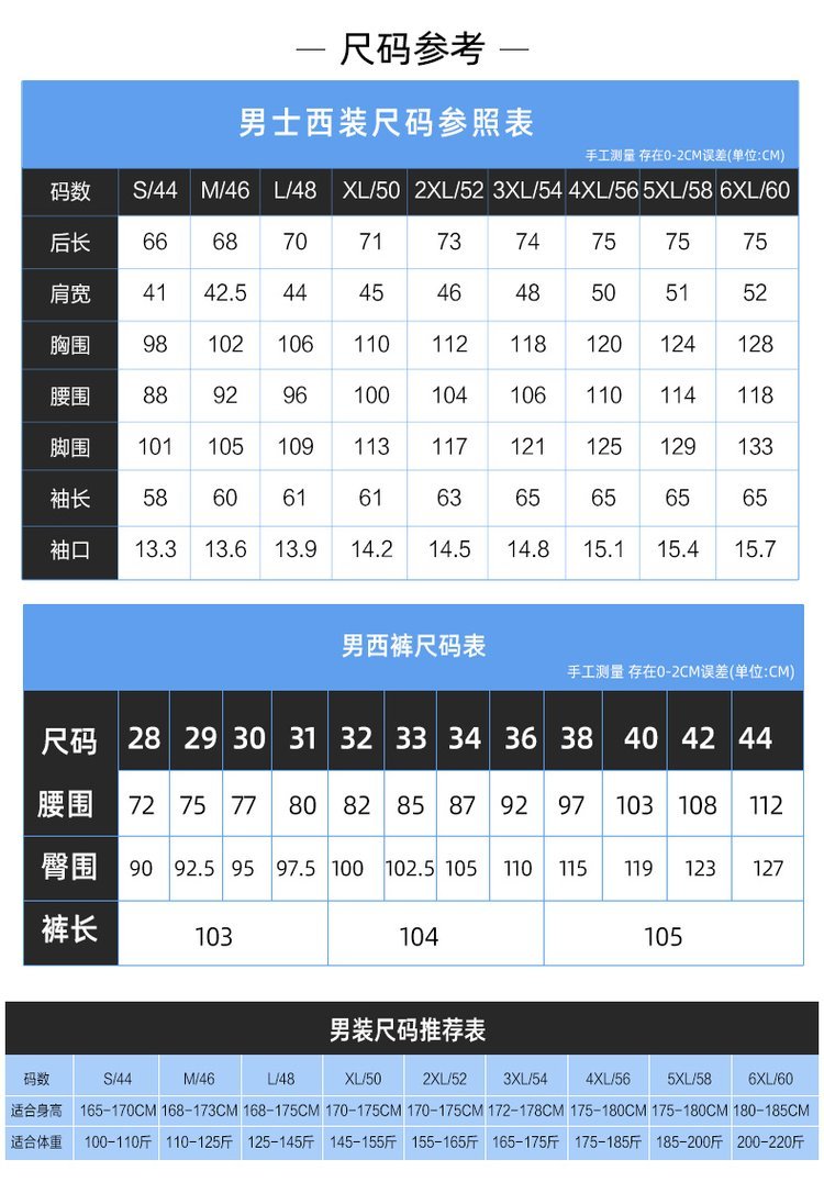 | 尺码 | 量体定制服 | ||