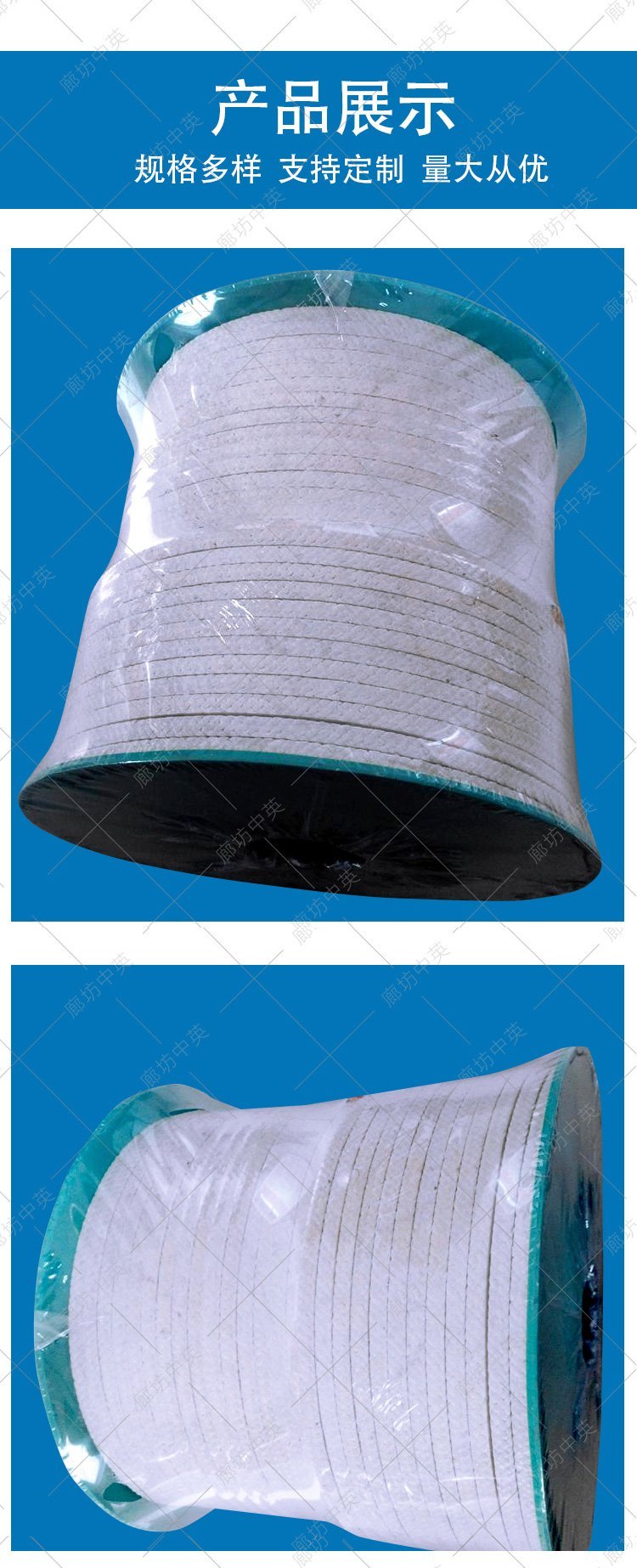 | 材质 | 浸渍聚四氟乳液和润滑剂处理编织而成 | ||