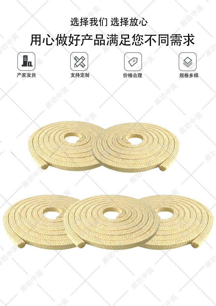 | 产品名称 | 芳纶盘根 | ||