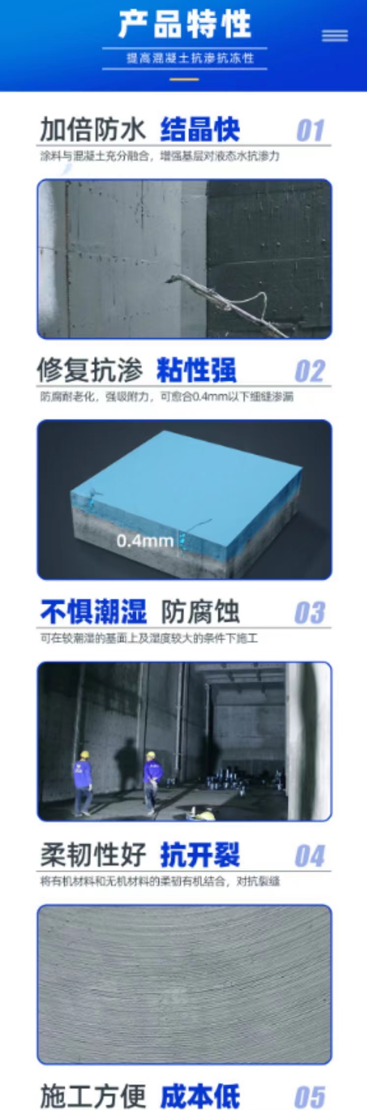 | 产品名称 | 水泥基渗透结晶型防水涂料 | ||