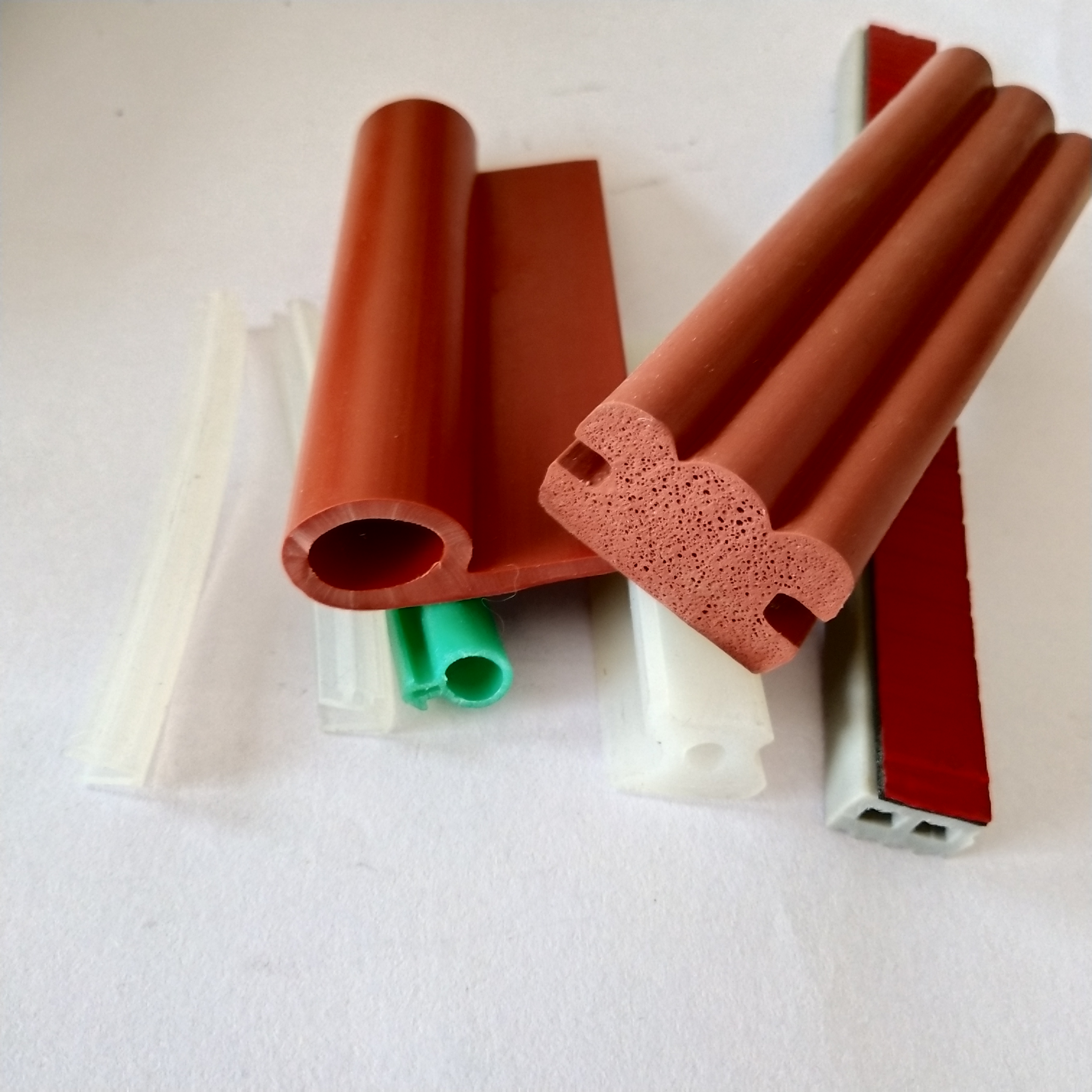 1、硅胶材料密封性能好,耐高温耐侯性,抗老化抗击打,防震防水,能贴合各类光滑表面材质 2、可背胶带自粘,密封性更好,耐高温胶长久使用不脱落。环保安全、绝缘性好、耐高温、压缩形变小、回弹性强、无毒 3 、发泡硅橡胶发泡均匀,密度可做到0.25-0.85g/cm3,邵氏硬度8-30A。环保无毒无臭味,回弹性好,柔韧性好,表面无气泡无气孔。强度高,使用寿命长,产品绝缘环保,耐高低温,耐压缩,耐酸碱抗老化,抗紫外线。 4、表面平整、发泡密度均匀 5、良好的表层不粘性。透气性好 6、采用100%优质硅胶原料,并经过严格检测,符合环保标准。 7、.耐高温:-70度-300度 8、.耐热性:硅橡胶比普通橡胶具有好的多的耐热性,可在150度下几乎永远使用而无性能变化;可在200度下连续使用10,000小时;在350度下亦可使用一段时间。9、耐候性:普通橡胶在电晕放电产生的臭氧作用下迅速降解,而硅橡胶则不受臭氧影响。且长时间在紫外线和其他气候条件下,其物理性能仅有微小变化。10、抗老化,耐腐蚀,硅胶本身具有很强的惰性