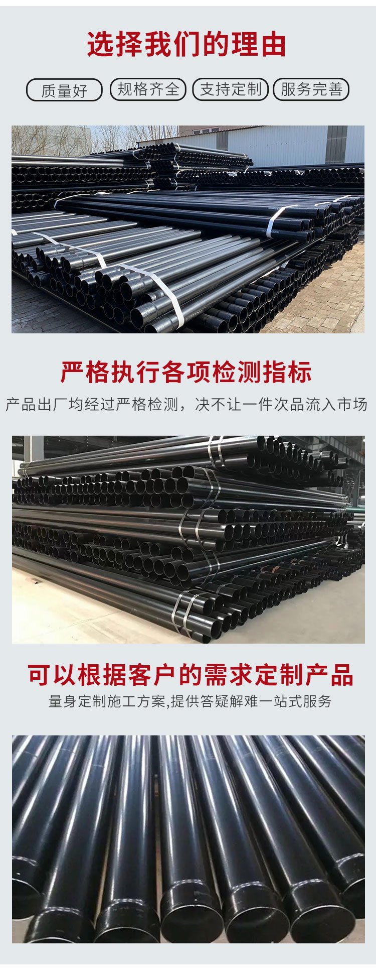 产品表面描述钢管通过热浸塑工艺加工制作而成的电缆保护管