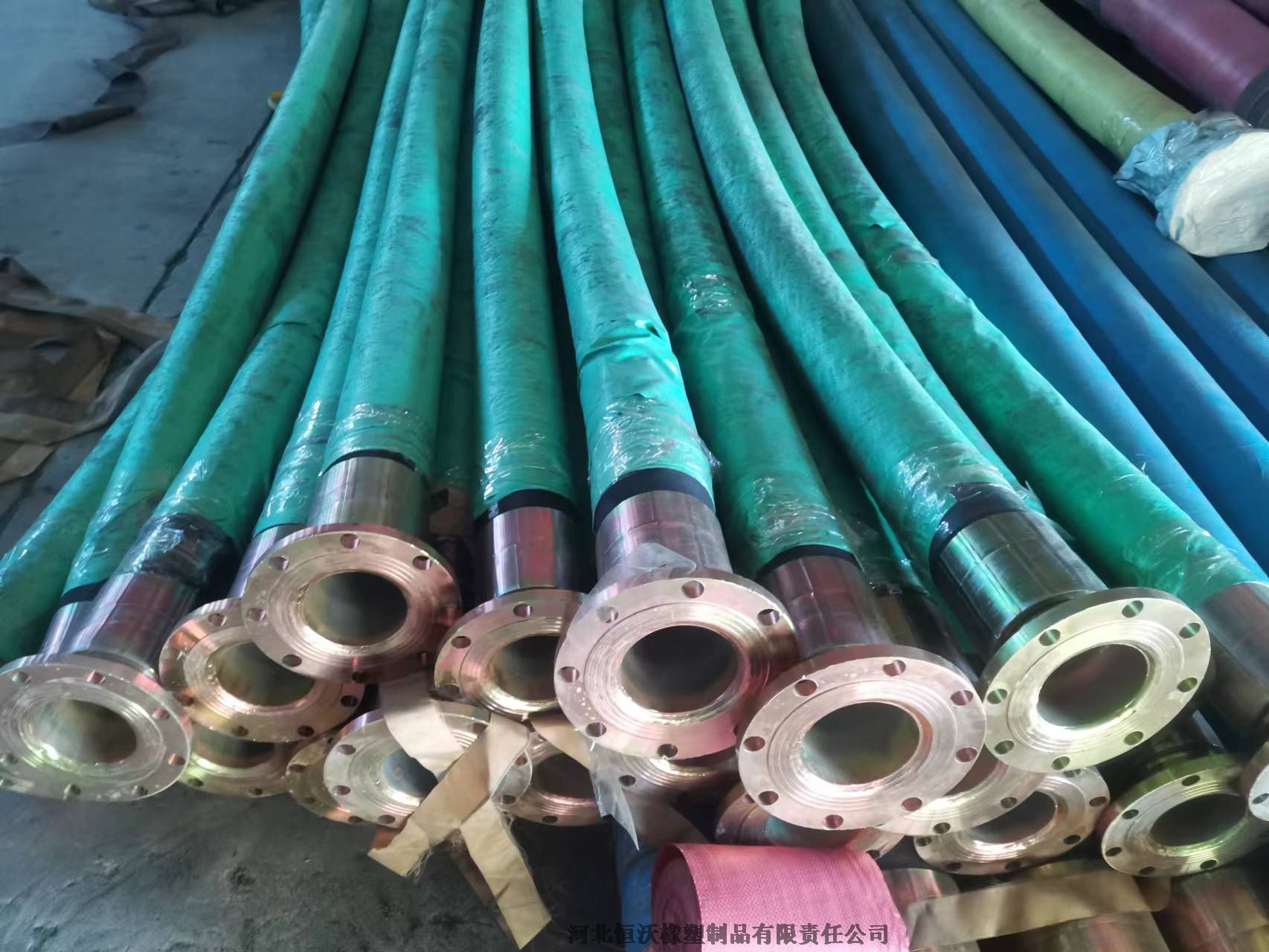 胶管由内胶层、中胶层、钢丝增压层和外胶层组成。内胶层具有使输送介质承受压力保护钢丝不受侵蚀,外胶层保护钢丝不受外界损伤。
