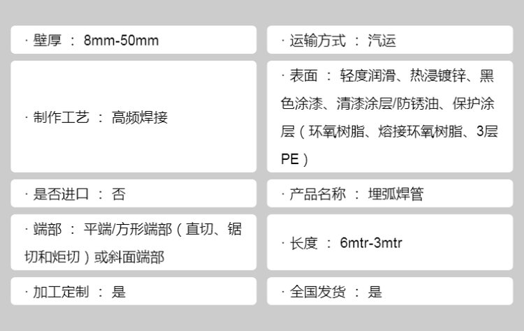 | 产品名称 | 埋弧焊管 | ||