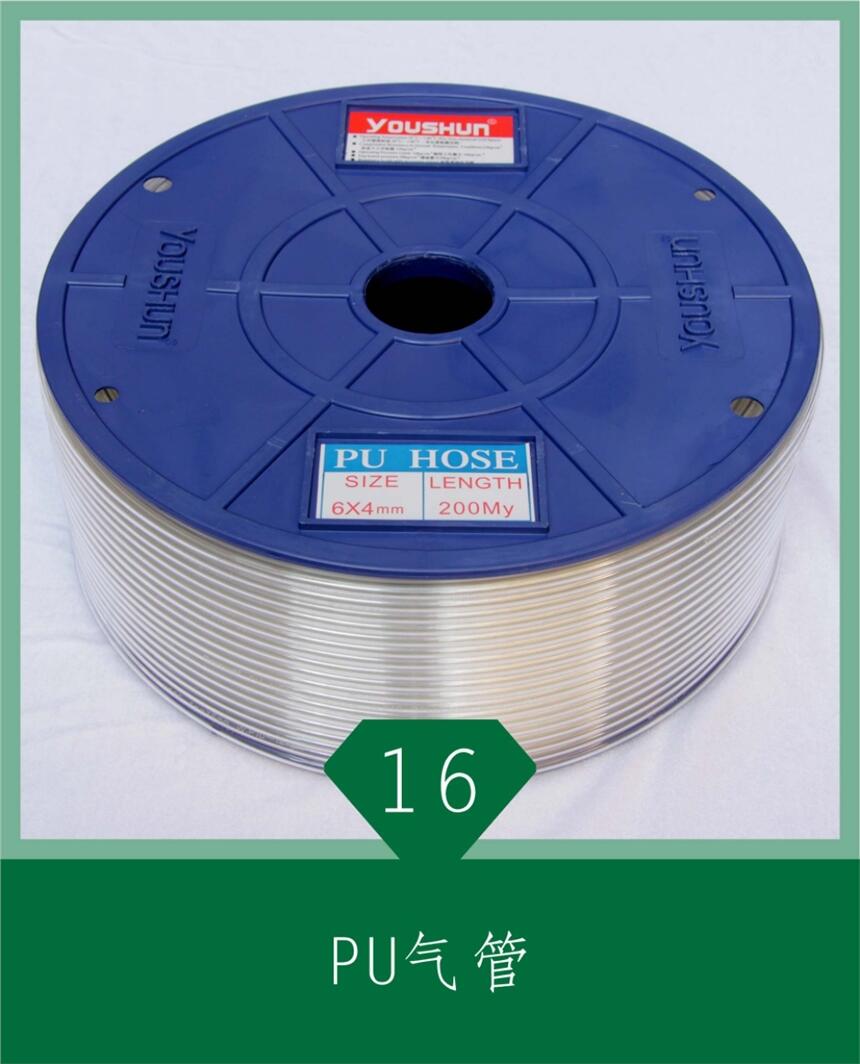 ■PU气动管采用优质全新PU(聚氨酯)料生产,YOUSHUN牌产品质量稳定、规格齐全。本产品具有耐磨、耐撕裂、耐撞击、耐温、耐候、伸缩性好、弯曲半径小、耐绕曲等特点。可抵抗部分无腐蚀性化学物及油类,阻尼性好,内壁光滑,摩擦系数低,介质通过能力高
