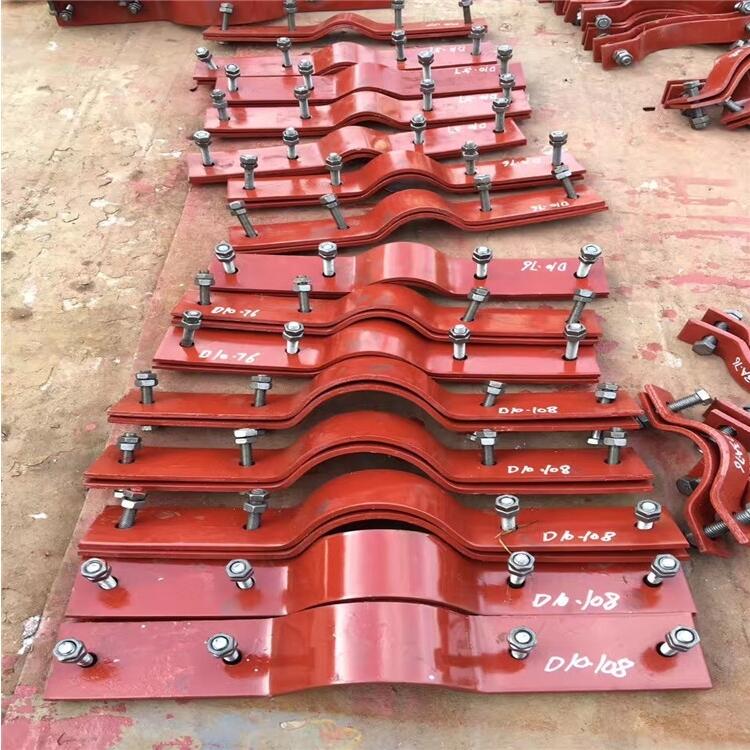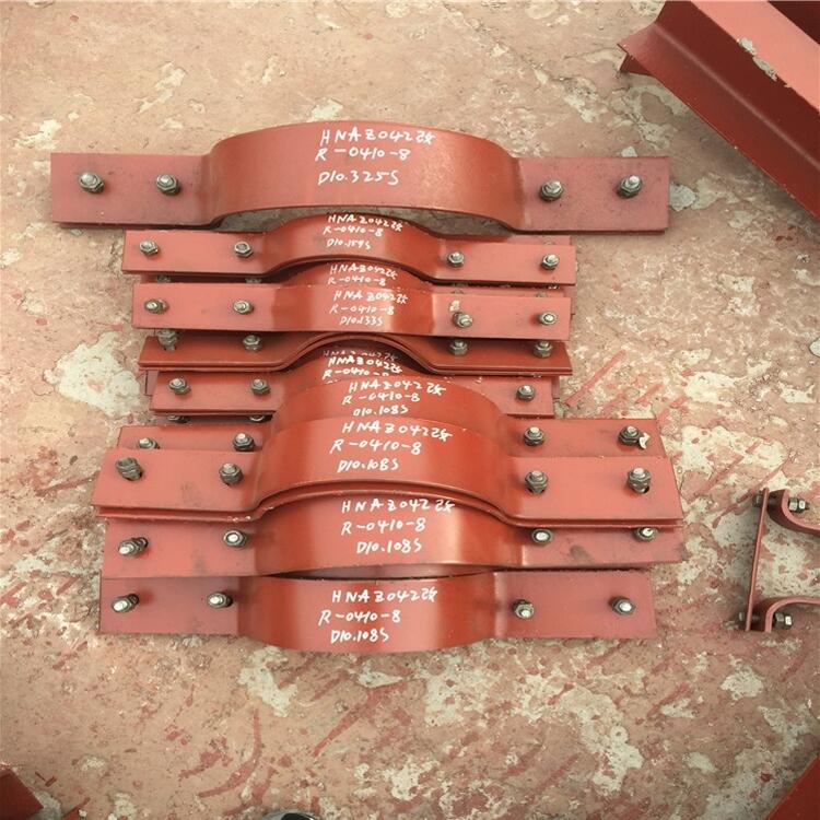 叠起装配,导轨可焊在基础上,或用螺钉固定,先装上下半个管夹身,放上需固定的管子再放上上半个管夹身,用螺钉固定,通过防松盖板防止它转动。然后安装第二个管夹,方法同上。