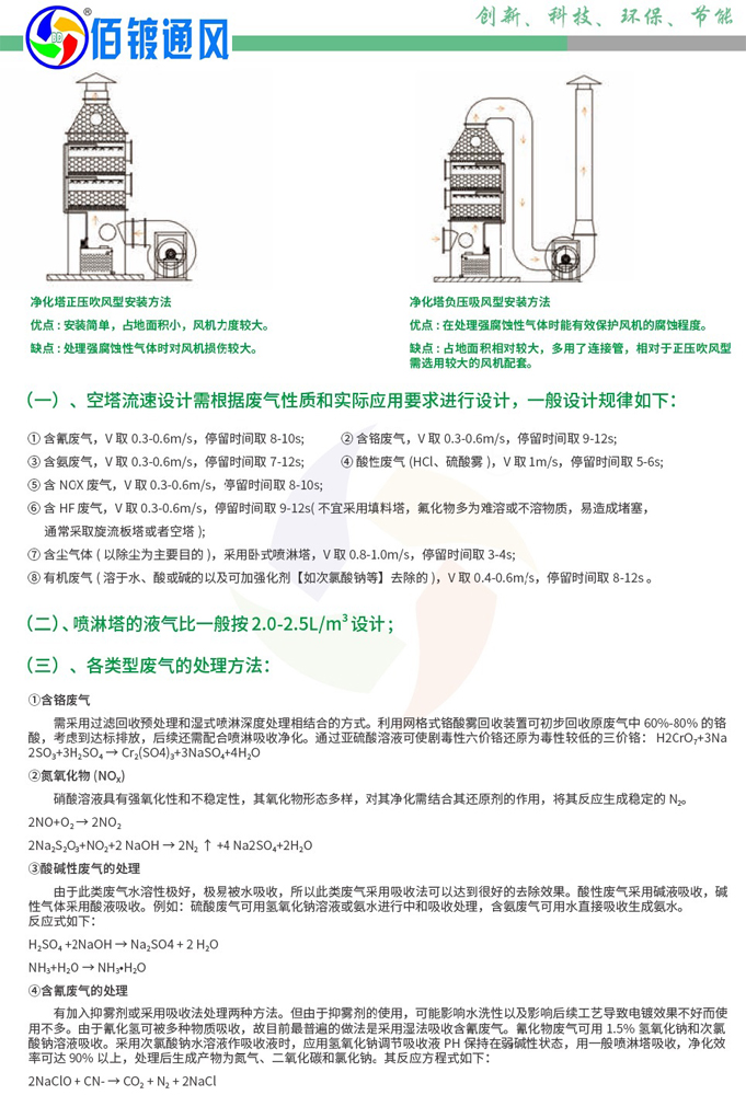 1、空塔流速设计需根据废气性质和实际应用要求进行设计,一般设计规律如下: