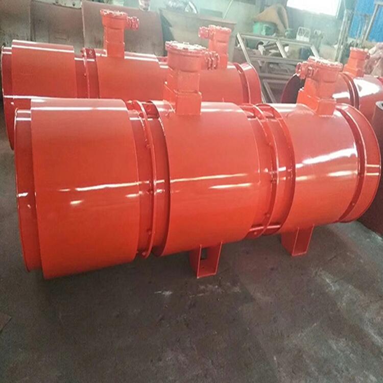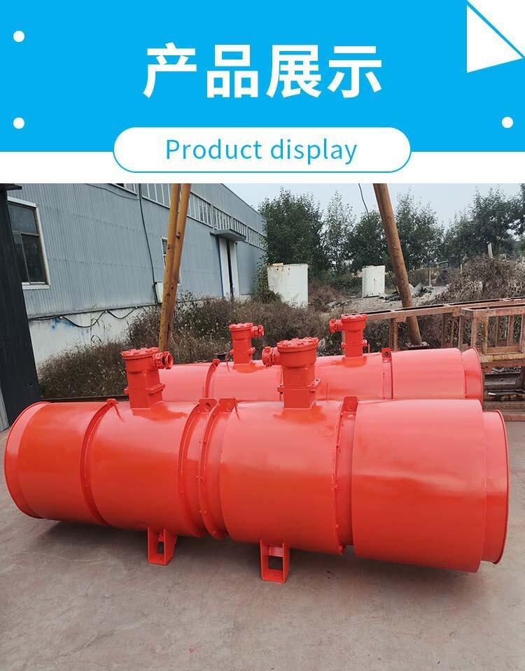 FBD系列矿用隔爆型压入式对旋轴流局部通风机(以下简称通风机),用于煤矿井下作压入式局部通风机,适用于采掘工作面及各种硐室的局部通风场合。通风机具有结构合理、规格齐全、效率高、节能效果好、噪音低、送风距离远等特点。根据不同的通风阻力要求,既可整机使用又可分级使用,从而减少通风电耗、节级能源。巷道长度在2000m以内可不移动通风机正常送风,减少了工人的劳动强度,节约通风时间,是煤矿井下局部通风的理想设备。
