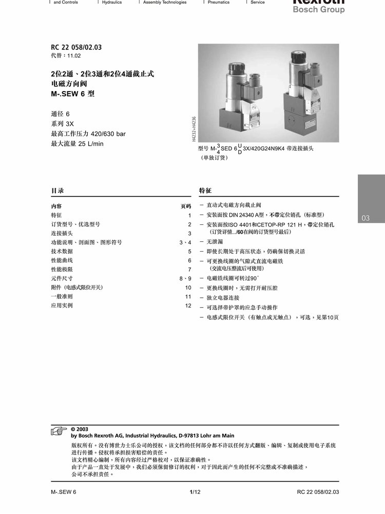 力士乐M-3SE电磁球阀