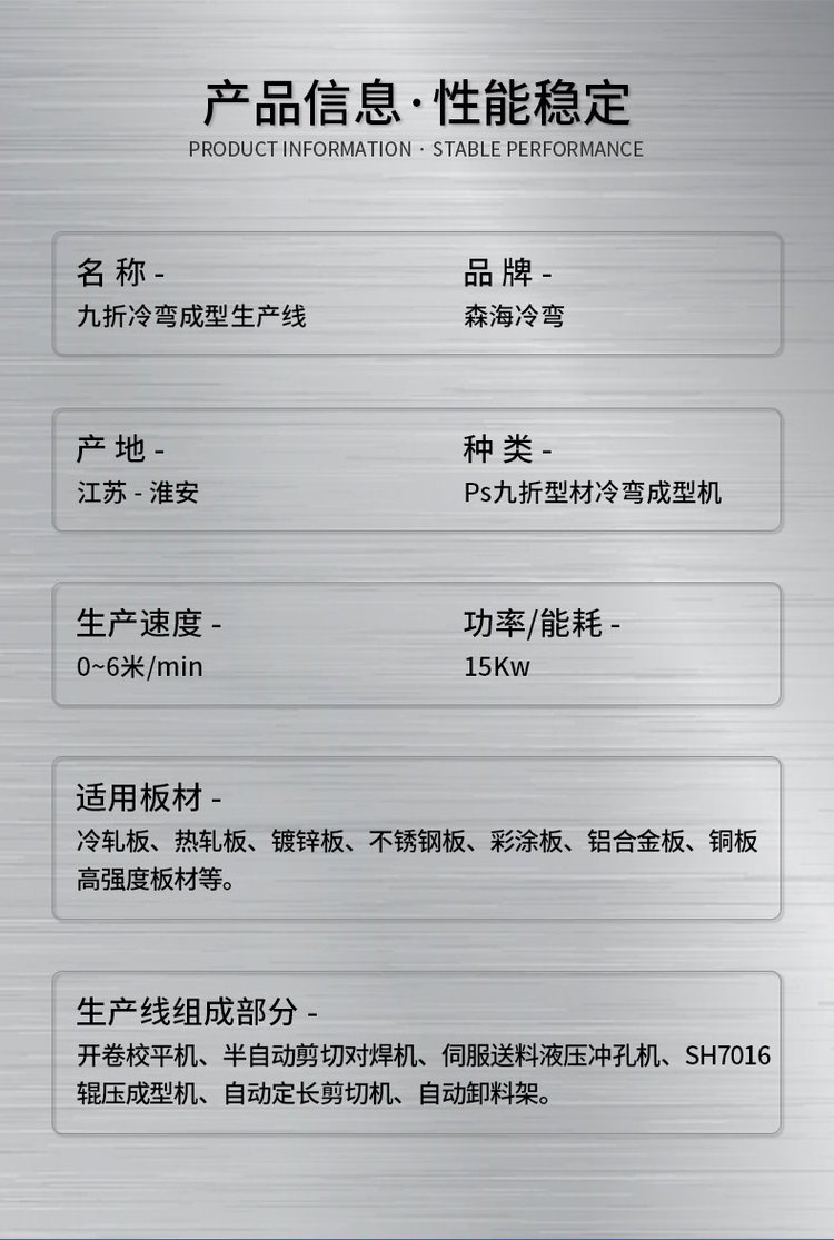 | 型号 | 九折冷弯成型生产线 | ||