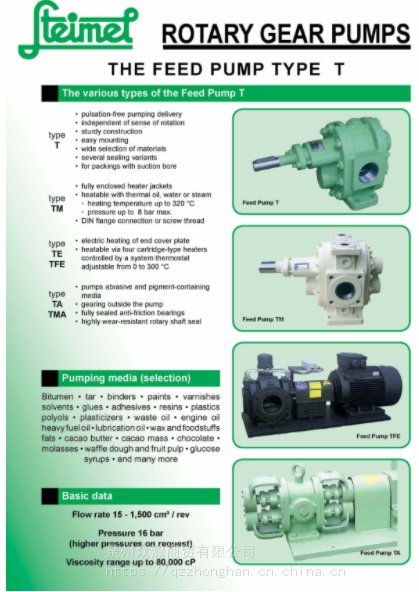 德国施特梅尔Steimel齿轮泵常见T型、TF型、SF型等型号举例: