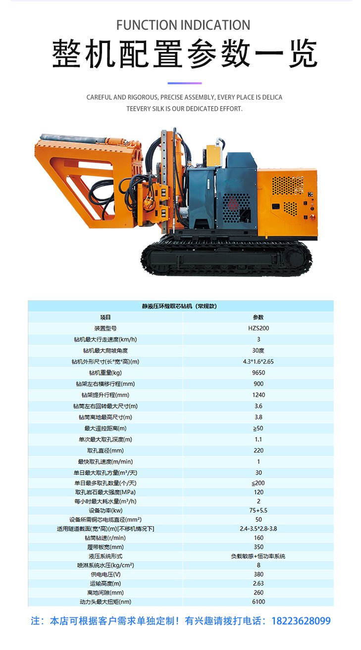 渝宏牌隧道取芯钻机硬岩静液压开采履带式水磨钻孔机