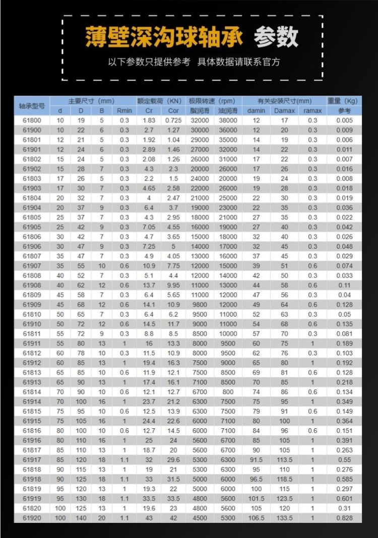| 类型 | 薄壁深沟球轴承 | ||