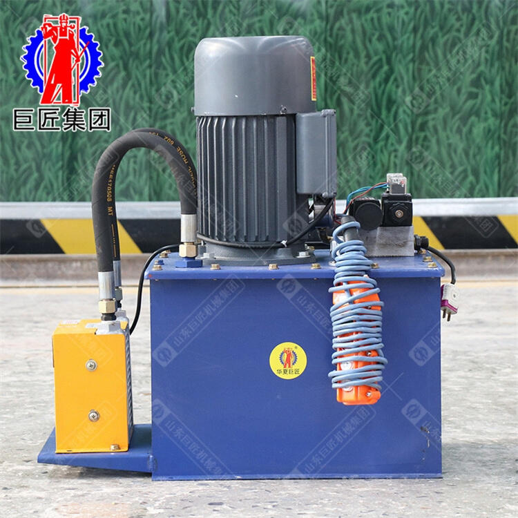 3、钻机配有液压泵站、液压马达和双链条实现主机的前进后退,大大的提高了钻进效率。