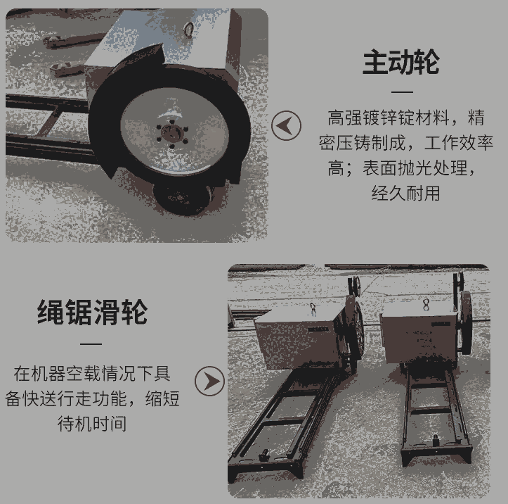 2、无需大量的冷却水,用过液压绳锯机的人都知道 液压泵站为了冷却油温必须用冷却水来降低问题,电动绳锯就不需要大量的冷却水了,只需要绳子的冷却水即可(用水桶打自留就足够了)。