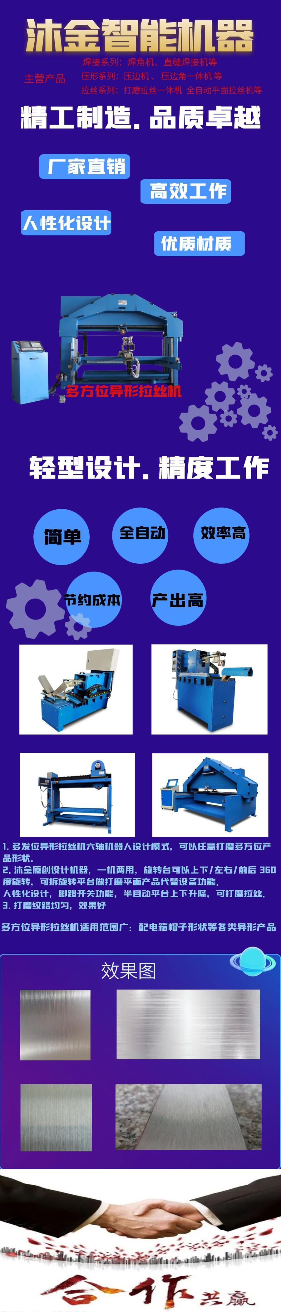 多方位异型拉丝机,打磨拉丝一体化,选择沐金智能机器,帮您解决表面打磨拉丝问题。