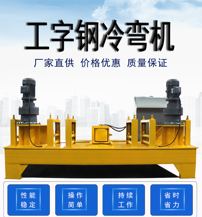 工字钢冷弯机是一种弯曲钢材的机械设备,因为多用于工程建筑中工字钢的弯曲,所以也叫做工字钢冷弯机、工字钢弯曲机、工字钢弯供机。它的主要作用就是按照使用要求将工件适当的弯曲变形而不改变钢材的内部应力,使得钢材既达到了弯曲变形目的又没有改变其力学性能。常用于各种工程建设中支护钢材的弯曲加工。 工字钢顶弯机 全自动数控工字钢冷弯机 小半径隧洞冷弯机。