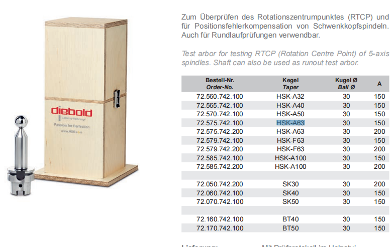 德国Diebold戴博 SK50球头检棒 五轴机床检测棒 主轴跳动检测