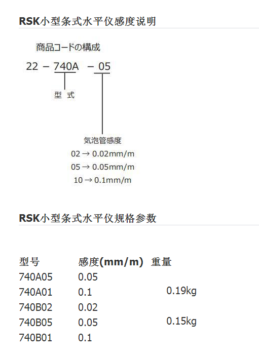 日本RSK新泻理研小型条式水平仪 740A01 精密型水平尺钳工水平仪