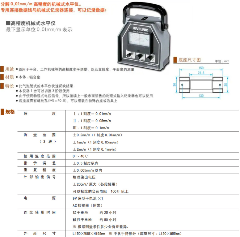 日本新泻精机SK机械式水准仪 指针式水平仪 EL-01A 精密型水平尺现货