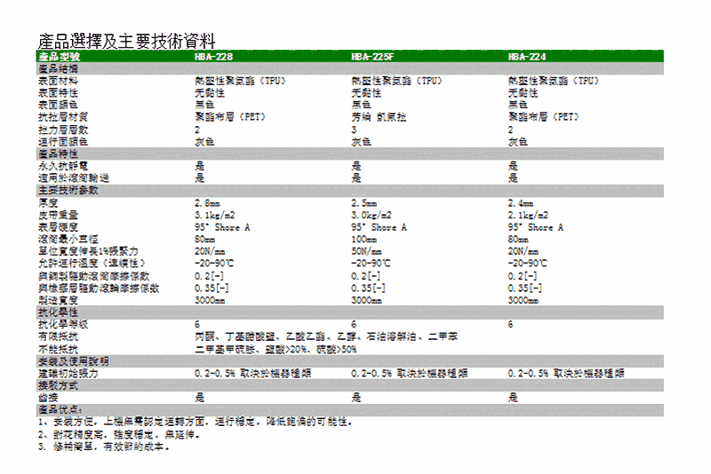 印花导带采用国际流行的高模数聚酯植物为骨架。导带具有很高的抗拉强度和很小的线性伸长率,加固单丝更好地保证了宽幅印花导带的平挺性。特别采用了带体的串联技术,更增强了导带的整体强度。