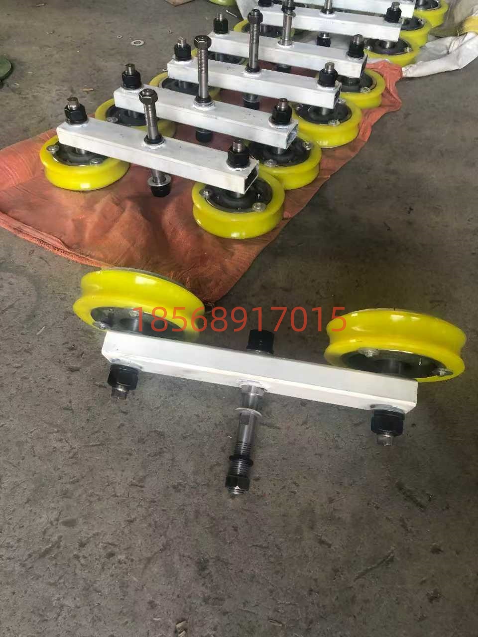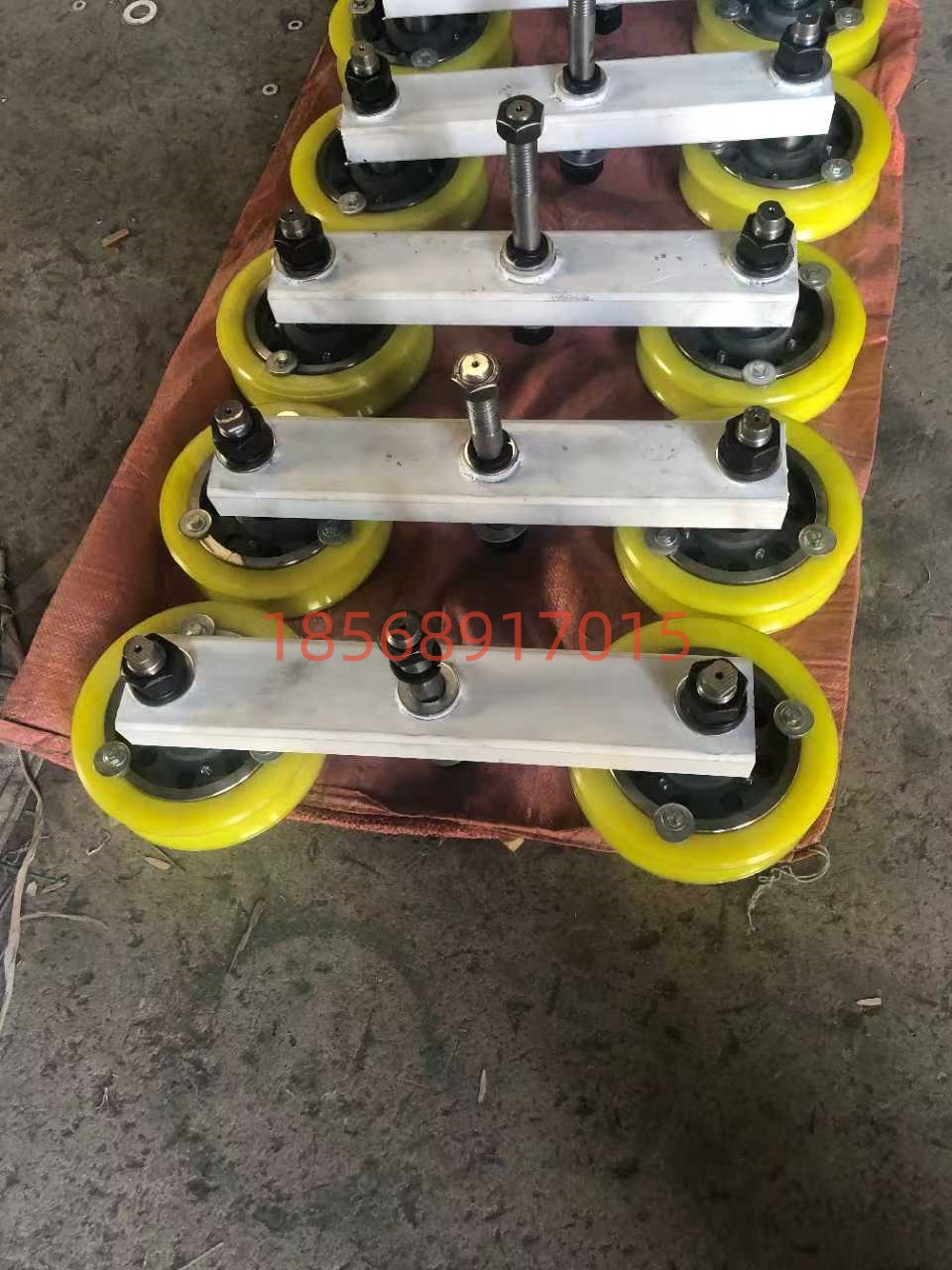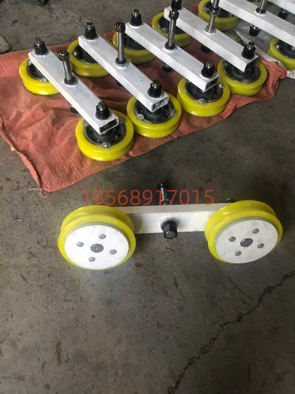 • 托轮:一般由耐磨材料(如铸钢、尼龙等)制成,具有较高的强度和耐磨性。托轮的表面通常经过特殊处理,以增加其摩擦力和抗磨损性能。两个托轮之间的间距和角度可以根据实际需要进行调整,以确保对钢丝绳的有效支撑和导向。
