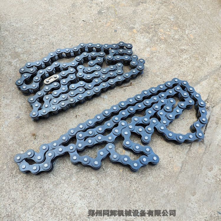 滚筒式搅拌机,筛子,皮带输送机等机械设备传动用16a的1寸单排长链条,节距25.4mm,常用节数有60/90/92/94/96节的链条,搭配相应的链轮使用。