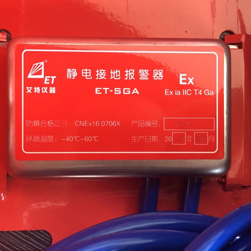 ET-SGA-F固定式静电接地报警器是油品装卸场合的标准化产品,不仅能将液体转运过程中产生的静电导入大地,还能够全程自动检测接地状况。当接地不良或断开时发出声音报警,以确保生产作业安全,ET-SGA-F固定式静电接地报警器常用于许多危险品的装卸和贮存场所,目的是将静电导入大地,防止产生静电火花。现行使用的大多是微型电子电路连续检测连接设备回路和接地端子回路电阻值。ET-SGA-F固定式静电接地报警器产品特点:1.ET-SGA-F固定式静电接地报警器采用超低功耗设计,正常使用期间无需更换电池;2.操作方便,24小时不间断值守;3.整体用环氧树脂密封,防腐、防水、防潮;4.提供声音报警,及时了解工作状态;5.ET-SGA-F固定式静电接地报警器检测静电接地电阻≤55Ω;6.持续报警8分钟,自动进入休眠状态,重新接好线立即唤醒;7.静电接地夹弹力强劲,破漆除锈,确保接地可靠。ET-SGA-F固定式静电接地报警器技术参数:1.工作电源:内置锂电池2.工作电流 lt;5ma3.工作温度:-40℃~60℃4.响应时间 lt;1s5.ET-SGA-F固定式静电接地报警器检测电阻 lt;55Ω6.防爆等级:ExiaIICT47.报警方式:声音报警(>90dB、30cm直线距离测量)8.电缆长度:静电接地夹端线长5米,接地线长3米 ET-SGA-F固定式静电接地报警器使用范围:A:各种汽车、槽车等移动式储罐;B:ET-SGA-F固定式静电接地报警器用于加油站、油库; C:油漆厂、药厂、酒精厂及化工厂;D:其它需要静电接地的场地。ET-SGA-F固定式静电接地报警器1.期十八个月,终生免费维护。 2. 静电接地报警器在期内,除人为因素外,任何因仪器设计、材料或工艺不当引起的缺陷、故障我们免费修理或更换