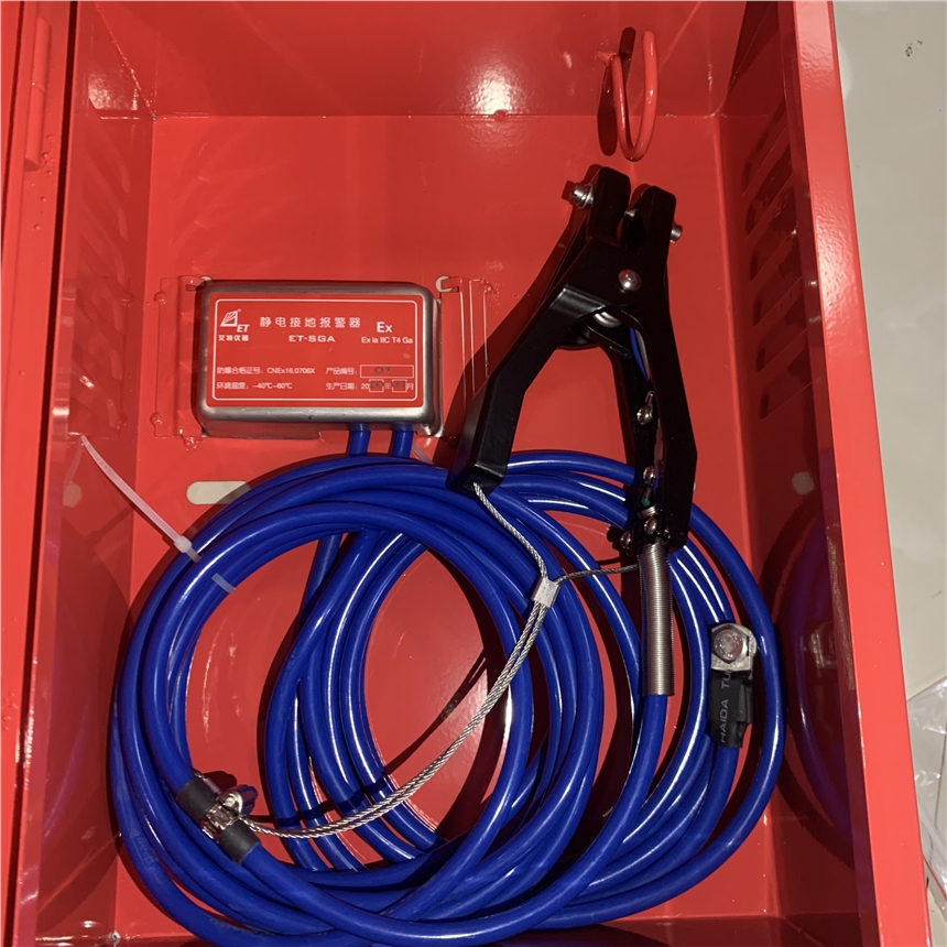 ET-SGA-F固定式静电接地报警器是油品装卸场合的标准化产品,不仅能将液体转运过程中产生的静电导入大地,还能够全程自动检测接地状况。当接地不良或断开时发出声音报警,以确保生产作业安全,ET-SGA-F固定式静电接地报警器常用于许多危险品的装卸和贮存场所,目的是将静电导入大地,防止产生静电火花。现行使用的大多是微型电子电路连续检测连接设备回路和接地端子回路电阻值。ET-SGA-F固定式静电接地报警器产品特点:1.ET-SGA-F固定式静电接地报警器采用超低功耗设计,正常使用期间无需更换电池;2.操作方便,24小时不间断值守;3.整体用环氧树脂密封,防腐、防水、防潮;4.提供声音报警,及时了解工作状态;5.ET-SGA-F固定式静电接地报警器检测静电接地电阻≤55Ω;6.持续报警8分钟,自动进入休眠状态,重新接好线立即唤醒;7.静电接地夹弹力强劲,破漆除锈,确保接地可靠。ET-SGA-F固定式静电接地报警器技术参数:1.工作电源:内置锂电池2.工作电流 lt;5ma3.工作温度:-40℃~60℃4.响应时间 lt;1s5.ET-SGA-F固定式静电接地报警器检测电阻 lt;55Ω6.防爆等级:ExiaIICT47.报警方式:声音报警(>90dB、30cm直线距离测量)8.电缆长度:静电接地夹端线长5米,接地线长3米 ET-SGA-F固定式静电接地报警器使用范围:A:各种汽车、槽车等移动式储罐;B:ET-SGA-F固定式静电接地报警器用于加油站、油库; C:油漆厂、药厂、酒精厂及化工厂;D:其它需要静电接地的场地。ET-SGA-F固定式静电接地报警器1.期十八个月,终生免费维护。 2. 静电接地报警器在期内,除人为因素外,任何因仪器设计、材料或工艺不当引起的缺陷、故障我们免费修理或更换