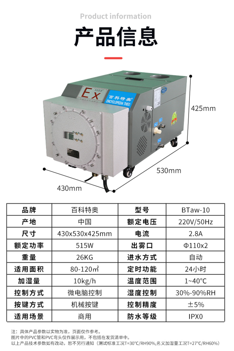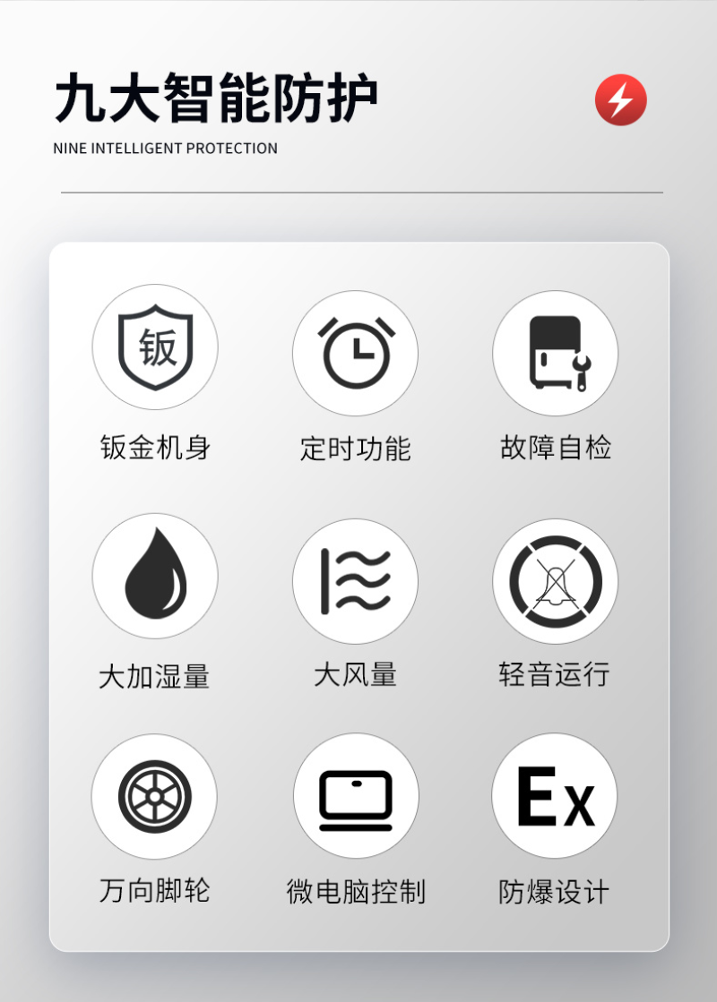 加湿效率:采用超声波高频震荡技术,可快速将水雾化,加湿量达10kg/h,能在短时间内提升环境湿度。