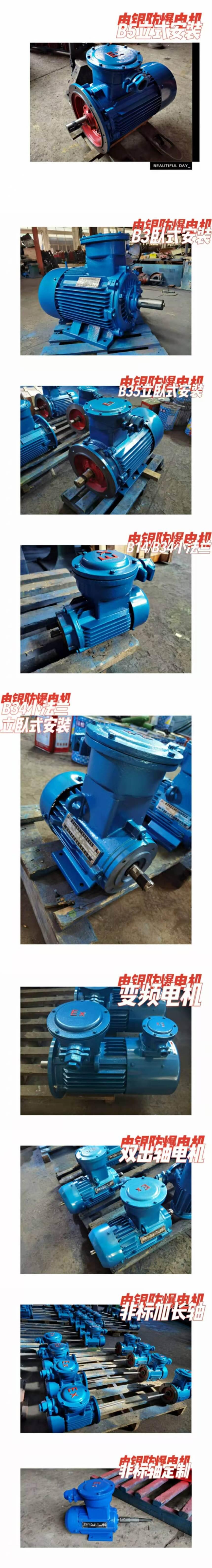 5.安装方式:B3(卧式底脚链接);B5(立式法兰盘连接);B35(立卧两用,底脚法兰盘都带)B14(立式小法兰连接);B34(立式小法兰连接带底脚)