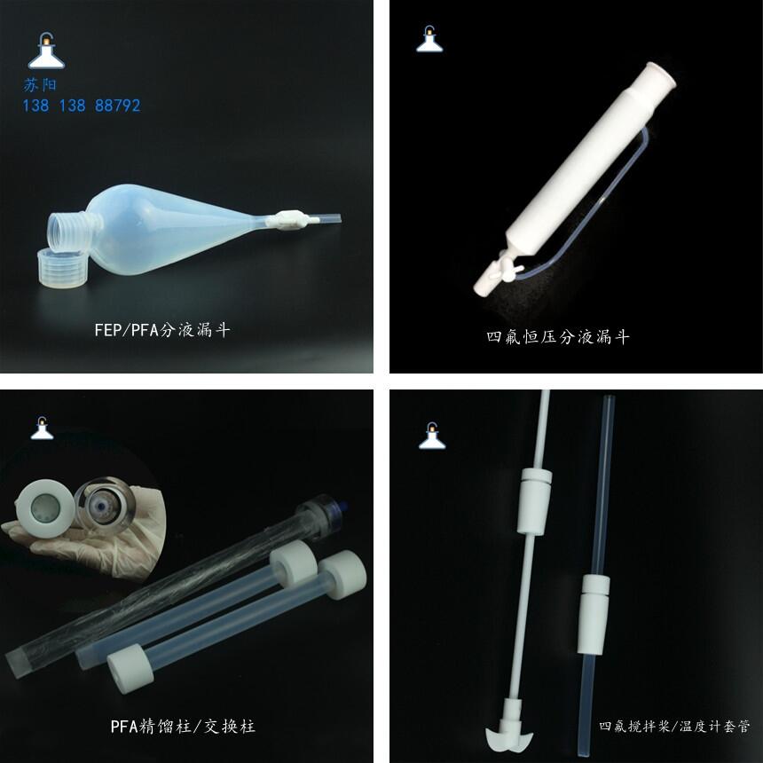 PFA精馏柱/交换柱/PFA进样管/FEP温度计套管/四氟搅拌桨/四氟蒸馏头/四氟尾接管等都可定制
