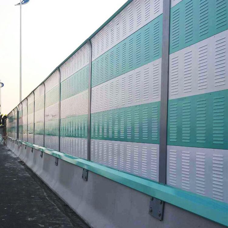 彩钢板声屏障经过冲床冲压成圆孔或者百叶孔。可加工成百页窗式、穿孔式、微穿孔式和开槽孔式等多种吸隔声型。 开槽孔式的吸声彩钢复合板,对于高频率噪音的隔声减噪效果非常好;不开槽孔的彩钢复合板,对于中、低频率噪音隔声减噪效果较好,所以,根据噪声的分贝大小、不同的噪音频率及环境情况的不同,选用合适的声屏障,以免影响其隔音降噪的效果。为了使屏障的减噪效果好,应尽量使屏障靠近声源或接受点。