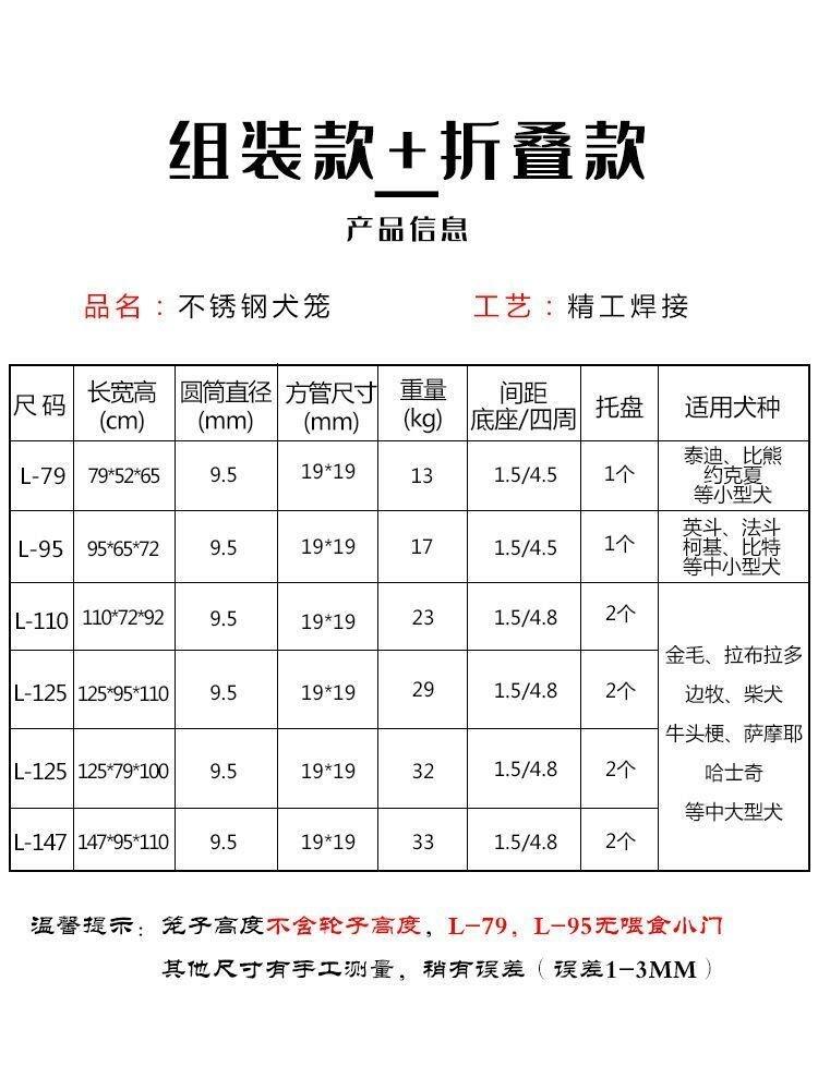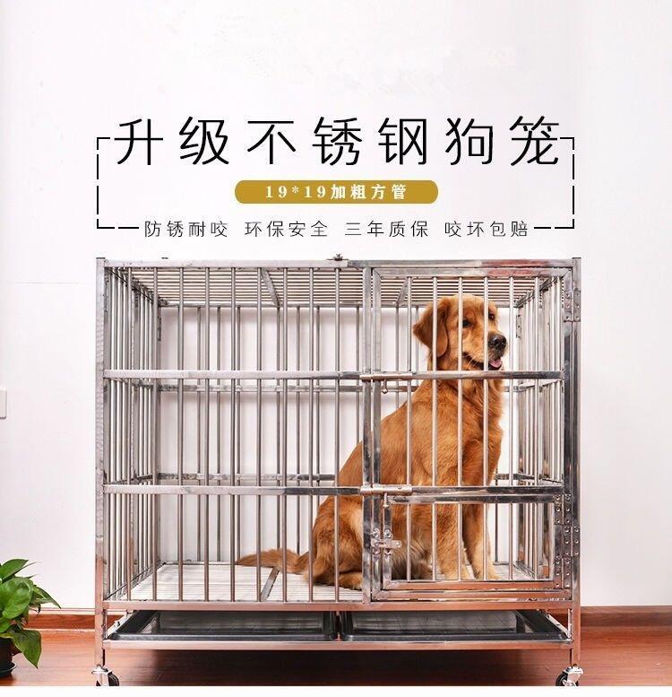 不锈钢狗笼子 大型中型犬折叠金毛大号带厕所室内加粗拉布拉多笼