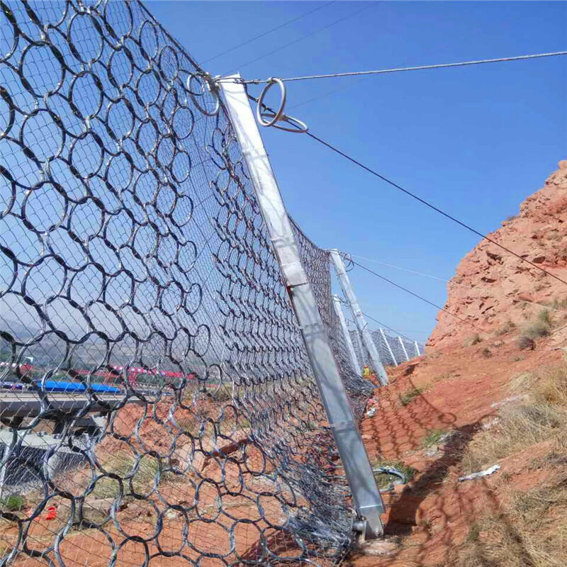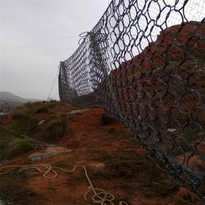环形边坡防护网采用热镀锌工艺,在落石冲击过程中能发生自身几何形态改变、具有更为突出柔性特征的环形防护网来取代钢丝绳网,以此为基础的拦石网能够实现3000kJ以上的落石阻拦,并能进一步简化结构形式(如支撑绳和减压环的配置)、方便局部受损后的维护修复,环形防护网已经成为一种替代钢丝绳网系统的新型拦石网(RXI型),实现了SNS被动防护系统的更新换代和升级。