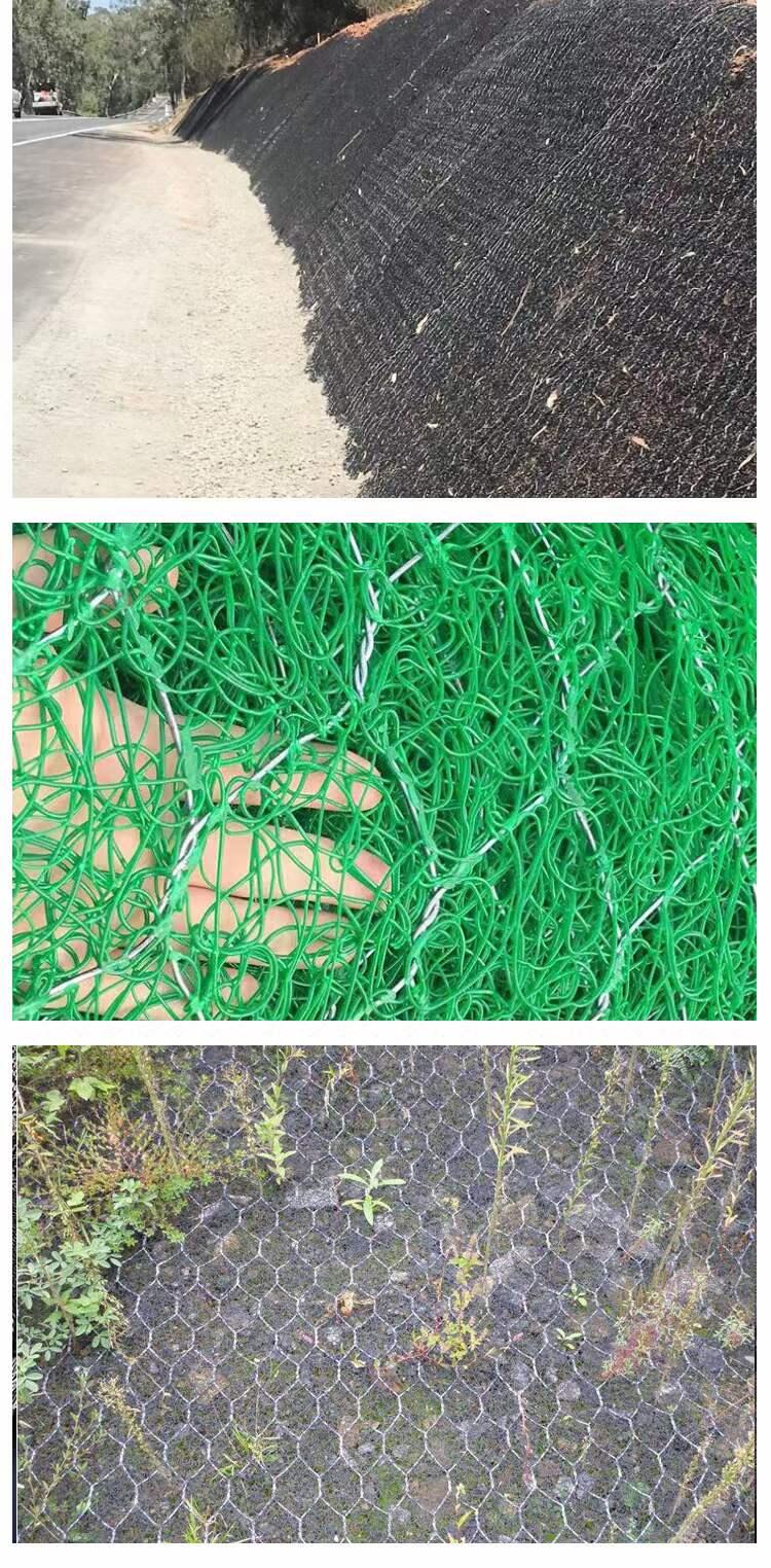 加筋麦克垫系由聚丙烯土工材料与绿格网组合而成的土工垫。这种合成材料结合了土工垫完美的抗侵蚀性能,比其具有更高的机械张拉力及更强的防冲刷性能,可广泛应用于边坡表层冲刷防护。土工材料为聚丙烯材质,绿格网钢丝通常选用防腐性能好的镀10%铝锌合金钢丝。