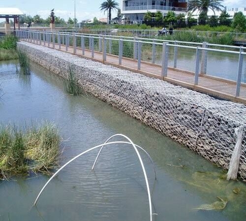 绿滨垫就是所谓的网垫,厚度在0.15-0.3m(含0.3m)的网箱结构,常见的厚0.17m,0.23m,0.3m,延伸率—抗拉强度都和固滨笼/格宾网是一样的标准,并且安装也很方便。绿滨垫具有固堤防冲刷的作用, 固滨笼工艺是指将特种钢丝由专用机械编织成双绞、蜂巢形网目的格网片,根据工程设计要求,裁剪、设计、组装成箱笼并装入块石等填充料后连接成一体的结构,用作提防、路基防护工程。