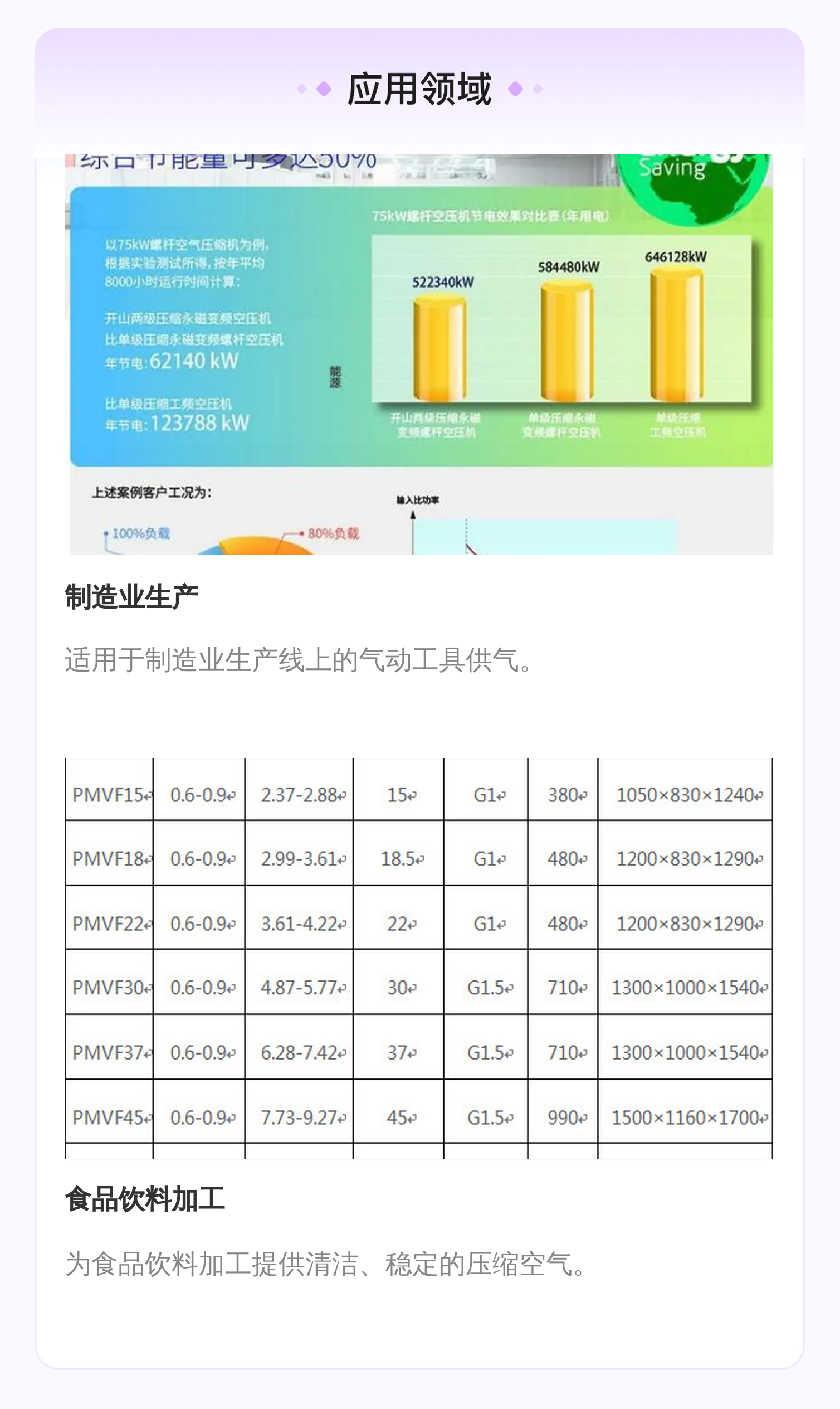 | 应用案例 | 以75kW螺杆空气压缩机为例,3000小时运行时间计算,节电量可达522340kW | ||
