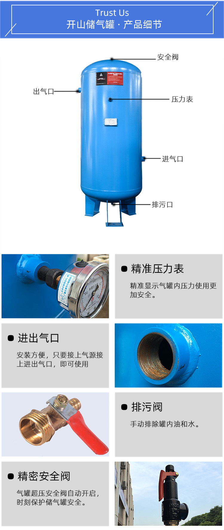 开山品牌8公斤,0.3立方储气罐稳压耐用空压机专用
