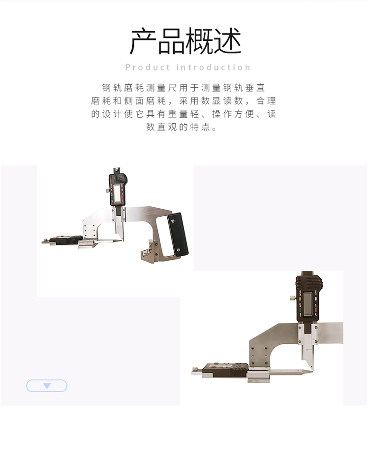 | 用途 | 测量钢轨垂直磨耗和侧面磨耗 | ||