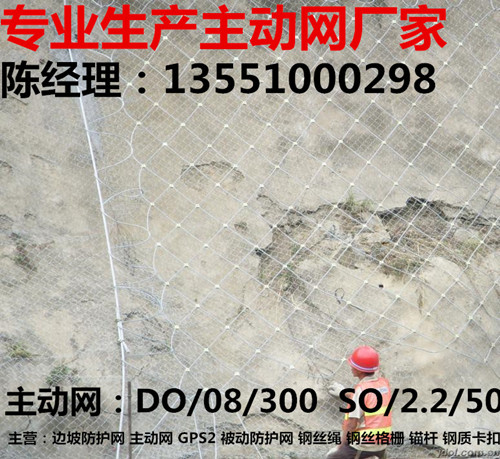 主动防护网主动防护系统是以钢丝绳网为主的各类柔性网覆盖包裹在所需防护斜坡或岩石上,以限制坡面岩石土体的风化剥落或破坏以及为岩崩塌(加固作用),或将落石控制于一定范围内运动(围护作用)。